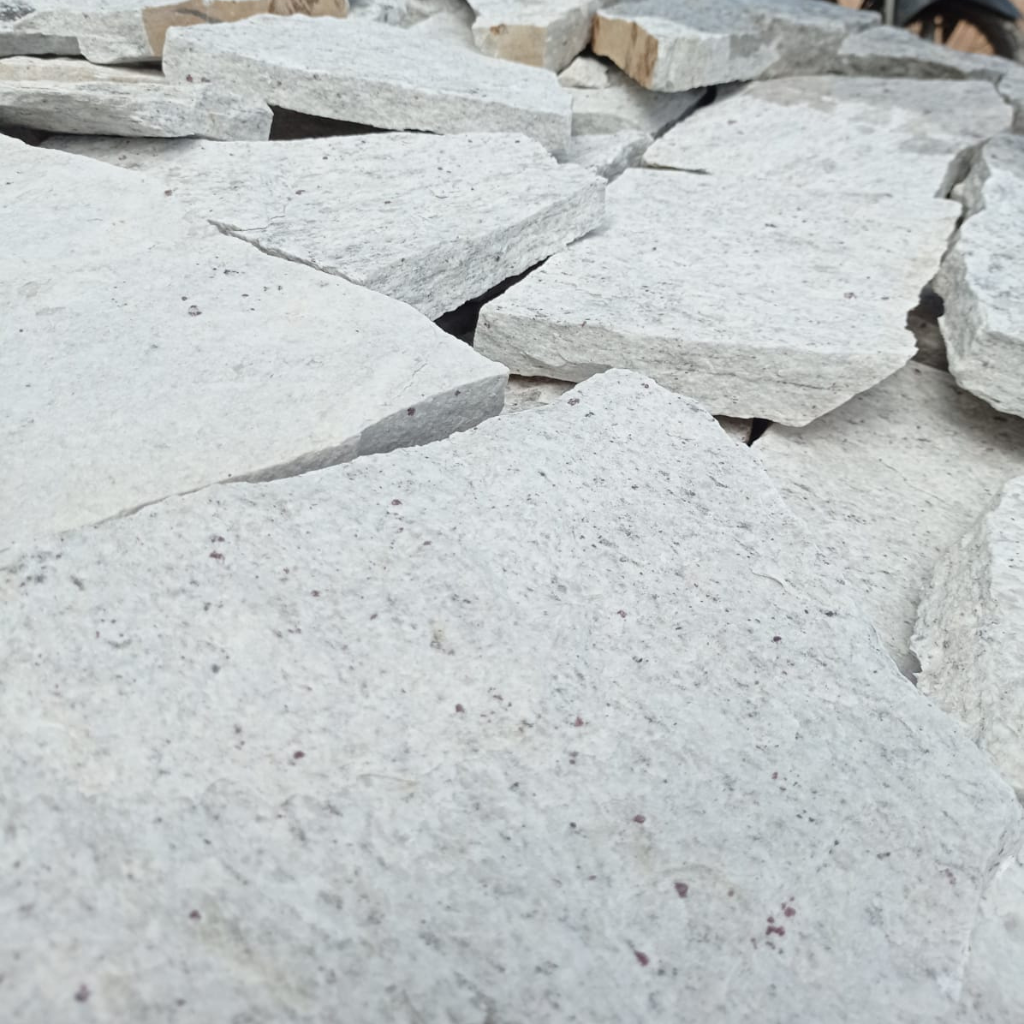 Estética Orgânica e Refinada: A irregularidade natural das peças e a mistura de tons claros com cinza criam um visual único e autêntico.